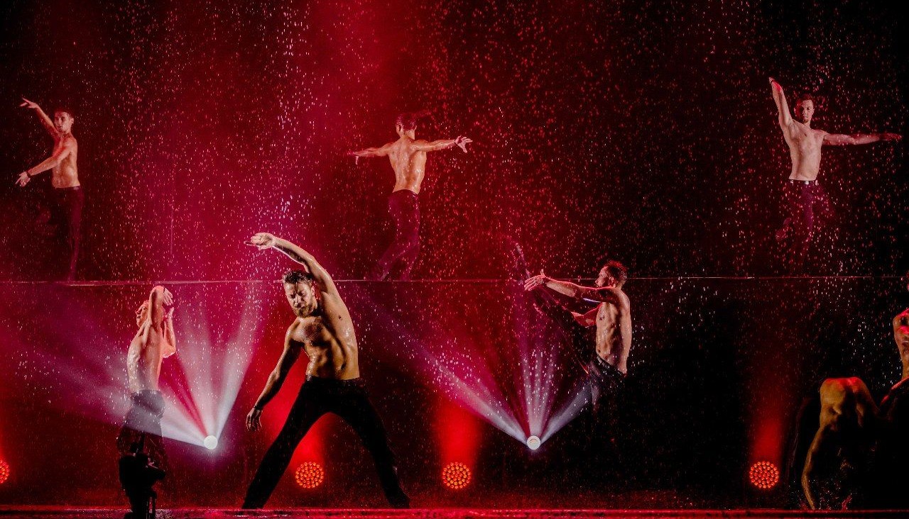 В финале номера исполняются под потоками воды! Всех зрителей ждёт неизменная и самая вкусная вишенка на торте — сумасшедшие танцы под дождём!
